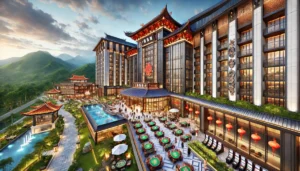 DALL·E 2024-11-26 16.39.02 – A modern, luxurious casino resort in Taiwan, featuring traditional Taiwanese architecture combined with contemporary design elements. The exterior isBy charlie yang / November 26, 2024